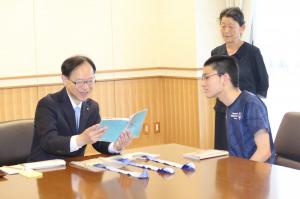 令和7年5月20日 今年3月にイタリアで開催された、「2025年スペシャルオリンピックス冬季世界大会・トリノ」に出場し、メダルを獲得したスピードスケートの廣瀬武尊(ひろせほたか)選手(大分市出身)および関係者が県庁を訪れ、知事に結果報告をしました。 スペシャルオリンピックスとは、知的発達障がいのある人の自立や社会参加を目的として、日常的なスポーツプログラムや、成果発表の場としての競技会を提供する国際的なスポーツ組織です。 NPO法人スペシャルオリンピックス日本・大分 理事長の佐々木稔さんは、「この大会には、日本からは32人が参加しました。廣瀬選手はスピードスケートのショートトラックに出場し、777メートルで金メダルを、500メートルと333メートルでは銀メダルを獲得しました」と、結果報告をしました。 廣瀬選手は、「出場に際し、期待と同じくらい大きな不安がありましたが、声援に大きな力をもらい、全力で滑りきることができました。表彰台に上がったときは、最高にうれしかったです。たくさんの人に支えられ、おかげで素晴らしい結果を残すことができました。イタリアでのこの体験は、一生の宝物です」と、メダル獲得の喜びを語りました。 佐藤知事は、「このたびは、金メダル1つ、銀メダル2つということで、大変な活躍をされましたね。海外遠征は初めてで、緊張されたとのことでしたが、実力を遺憾なく発揮され、世界の頂点に立たれたことは、努力のたまものであると思います。陸上競技や水泳競技でも1位を多数獲られており、夏の大会でも活躍が期待されます。今後は、ロス・パラリンピックや世界の様々な大会で活躍してほしいと思います」と、メダル獲得を称賛し、エールを送りました。