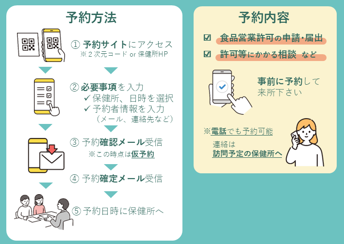 円滑な保健所窓口での申請・相談受付のため、事前の窓口予約をお願いしています。