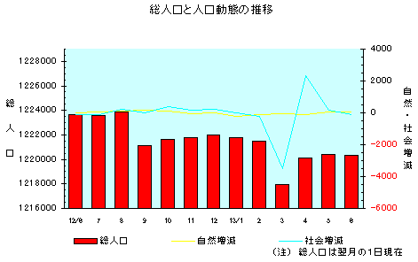 ※平成12年10月以降の各月1日現在総人口は、平成12年10月1日現在人口を平成12年国勢調査による要計表(速報)人口に入れ替えているため、9月以前の各月1日現在人口とは接続しません。