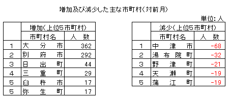 前月と比べ26市町村(4市14町8村)で増加、30市町村(7市20町3村)で減少となっています。