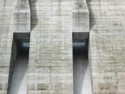 平成22年5月29日(土)7時に常時満水位に到達しました。 そして同日、常用洪水吐(運用に入った時に通常水が流れ出る放流口)を塞いでいた鋼製ゲートの撤去を行い、運用を開始する運びとなりました。
