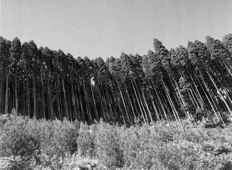 下のほうをきれいに伐採しているのが、いい杉山だといわれる。当時は地域の人たちが「杉の子少年団」といわれる育成会を運営するなど、自然保護の気運が高まっていた。