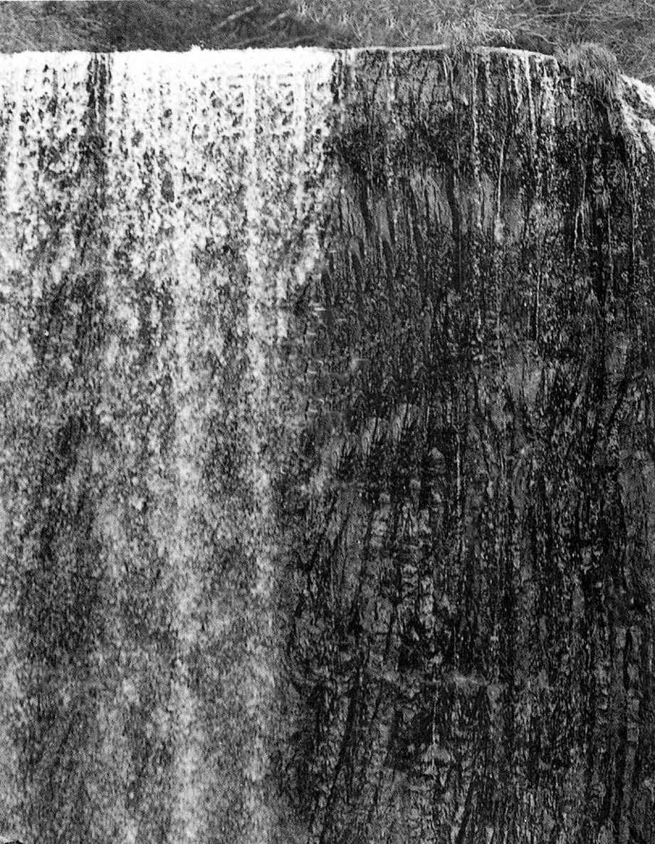 岩肌を滑り降りる「滝すべり」で有名な竜門の滝。付近は筑紫溶岩と呼ばれる100万年前の火山活動で噴出した溶岩台地の一部である。その岩に柱状節理という縦方向に長い柱のように規則正しい割れ目が見られる。火山で噴出した岩が冷却して収縮するときなどに、岩内部に力が働いて割れ目が生じるという。自然の造形美に驚かされる。