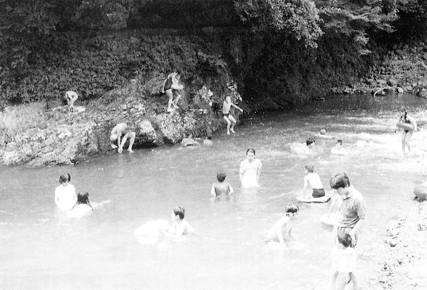 梅雨明けで、夏本番を迎えた平成9年7月20日、九重町の竜門の滝では、待望の滝開きが行われた。夏休み初日となったこの日は、子どもたちでいっぱいだった。暑さにも負けず、滝の勢いにも負けず、元気に滝を上ってはすべり下りていた。