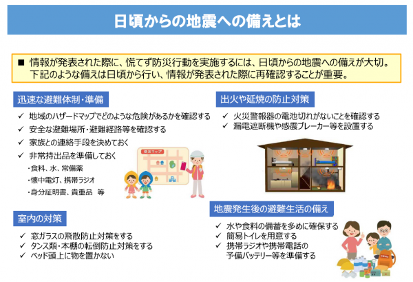 本日をもって終了しましたが、「日頃からの地震への備え」が大切です。