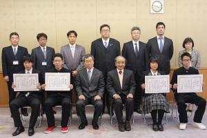 平成28年2月16日 高等学校在学中に技能検定2級または溶接技能者評価試験専門級に合格し、県内の事業所に就職が内定している5名の高校生に対して高校生技能振興奨励賞の表彰式が県庁で行われました。同賞は、若手技能者の確保と技能の継承及び向上並びに県内就職の促進を目的として平成20年度に創設され、これまでに40名が受賞しています。 表彰式で知事は、「皆さんのような優れた人材が県内企業を支え、ひいては大分のものづくり、地方創生の支えとなります。皆さんの今後の活躍に期待します」と激励し、受賞者代表の雪文香さん(大分工業高校3年)は「社会に出ても大分に貢献できるよう、がんばりたい」と抱負を述べました。 |