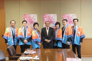 平成28年2月16日 津久見市四浦半島の河津桜植樹活動が10周年を迎え、現在では4千本以上が点在する県内最大の河津桜の名所となっています。今月21日(日)には10周年記念イベントが開催される予定で、津久見市の川野市長や戸高観光協会会長(「高」は「はしごたか」)ら6名が県庁を訪れ、つくみイルカ島併設のつくみマルシェで販売されている河津桜限定土産品(※)の新商品を知事に紹介しました。新商品を試食した知事は「どの商品も非常に美味しい。観光客の皆さんには、河津桜を見るだけでなく、食べても楽しんでいただきたい」と感想を述べました。 ※ 河津桜限定土産品:つくみマルシェにて期間限定(2/1~3/10)で販売されている桜関連商品や市内の人気商品。商品の売上の一部が河津桜育成事業に充てられる |