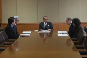 平成28年3月14日 県では、公共事業の効率性、透明性の一層の向上を図るため、農林水産部、土木建築部が事業主体となる公共事業について、「事前評価」、「再評価」、「事後評価」の各事業評価を行っています。2月23日に「第39回大分県事業評価監視委員会」を開催し、5件の県事業について事業評価(事前評価3件、再評価2件)を実施しました。同委員会の小倉委員長と安部副委員長が県庁を訪れ、審議結果について知事への答申を行いました。 小倉会長は、対象の5件の事業は妥当であるとの審議結果を知事に伝え、知事は「各案件に関してのご指摘に添って、しっかり対応していきたい」と返答しました。 |