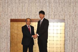 平成28年5月9日 水泳競技で「リオデジャネイロオリンピック日本代表」として出場する渡辺一平選手(佐伯鶴城高校卒業、早稲田大学2年)が競技団体等関係者とともに知事を表敬訪問しました。 渡辺選手は4月に競泳日本選手権の男子200メートル平泳ぎで2位に輝き、リオ五輪へ出場が決まりました。6月下旬からメキシコで合宿を行い、8月のリオ五輪に臨みます。 渡辺選手は「目標はメダルの獲得です。県代表、日本代表として良い結果を報告できるよう頑張ります」と抱負を語りました。広瀬知事は「勝負度胸がいいと感服しました。県民をあげて応援します」と激励しました。 |