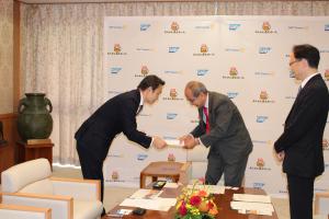 平成30年10月30日 出張・経費管理のクラウドサービスを提供する株式会社コンカー(本社:東京都中央区)が、大分市に新拠点を設置するにあたり、知事に立地表明を行いました。 三村代表取締役社長は「弊社は、出張費や接待費などの間接費をガバナンス、働き方改革・生産性の向上、コスト削減の3つの観点から管理するクラウドサービスを提供しており、世界のトップ企業のほとんどがこのサービスを利用しています。大分市に進出した理由は、県や市の支援プログラムが充実しており、採用面でも手厚い支援をいただいたからです。また、サービス・サポート本部の筒井本部長が大分出身で、大分に対して強い気持ちを持っていました。2022年末までには100名規模の会社となるよう急ピッチでしっかり取り組んでいきます」と述べました。これに対して広瀬知事は、「大分への進出について、心から歓迎いたします。大分に進出してよかったなと思っていただけるよう、しっかり支援していきたいと思います」と述べました。大分市の佐藤市長は「これからのニーズが高く、期待されている分野ですね。雇用が増えるので大変ありがたい。県と協力して支援していきます」と述べました。 |