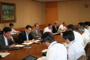 平成23年5月23日 平成23年度ごみゼロおおいた作戦実施本部会議が、第一応接室で開催されました。実施本部長である知事は、「県民の皆さんのご理解、ご協力をいただいて、今年度で9年目の取り組みとなりました。特に今年は東日本大震災の影響により、電力不足が懸念されています。これまで以上に節電や3Rの促進に取り組んでいきたい」と述べました。 |