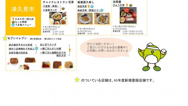 大分県では、県民の健康づくり支援の一環として、「エネルギーひかえめ」「野菜たっぷり」などの健康的なメニューを提供しているお店を『生涯健康県おおいた21推進協力事業所(健康応援団)』として登録し、健康づくりのための環境整備を図っています。
