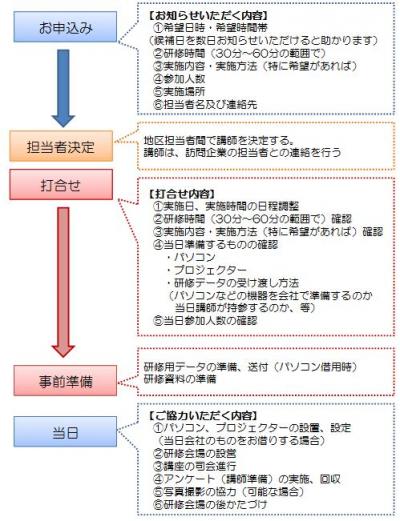 申し込みは日程調整の都合上、開催予定日の1ヶ月前までにお願いします。