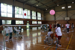 - 「三角巾リレー」・・・体のある部分に傷を負った人に対する三角巾の手当ての実施