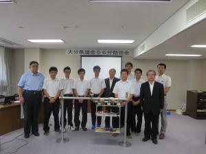 今回は、大分工業高校機械科3年2組の生徒の皆さんと、橋本教頭、指導者の佐藤新太郎教諭を講師にお招きし、「高校生が『特許』を取得 ~ロボット競技大会から『パテントコンテスト』をへて~」と題してご講演いただきました。全国高校ロボット競技大会出場に向けて開発した、四つの車輪を使ってパイプを渡る装置のアイデアが認められて特許を取得したことを通じて、地場産業振興のためには、高校生をはじめ、若い人たちの力と技術開発や特許取得が非常に重要なことを再認識しました。
