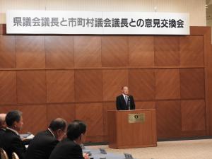 県議会及び市町村議会の各議長が一堂に会し、地方創生や人口減少対策等、地域が抱える共通の課題等について、相互に情報交換を行う意見交換会を開催しました。