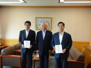 19日、東京都内で開催された全国都道府県議会議長会委員会終了後に、滋賀県議会、山口県議会、沖縄県議会の各議長から、井上議長に今回の豪雨災害のお見舞金を頂きました。