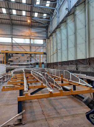 大分県では、令和5年度中の大分空港海上アクセス運航開始に向けて、ホーバークラフトを3隻を建造します。イギリスの工場において、令和4年1月より1隻目の建造を開始しており、現在船体下部構造を建造中です。