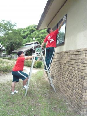 6月7日(木曜日)に、国東高等学校双国校3年生17名の皆さんにバンガロー清掃をしていただきました。数ヶ月ぶりに開けるバンガローの状況にひるまず、何度もバケツの水替えをしながらぞうきんがけをしている姿に、本当に頭がさがりました。