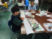 県立図書館のサポートを受けて準備した「地球」「環境問題」「植物」に関する多くの書籍と調査メモを活用し、調査内容をまとめたポスターを作成しました。