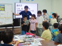 2日目は、所内で生き物を探しました。今回は、所内の沢での生き物探し、水辺から落ち葉の下まで幅広く観察することで「食物連鎖」とダンゴムシなど「分解者の役割」について学習しました。