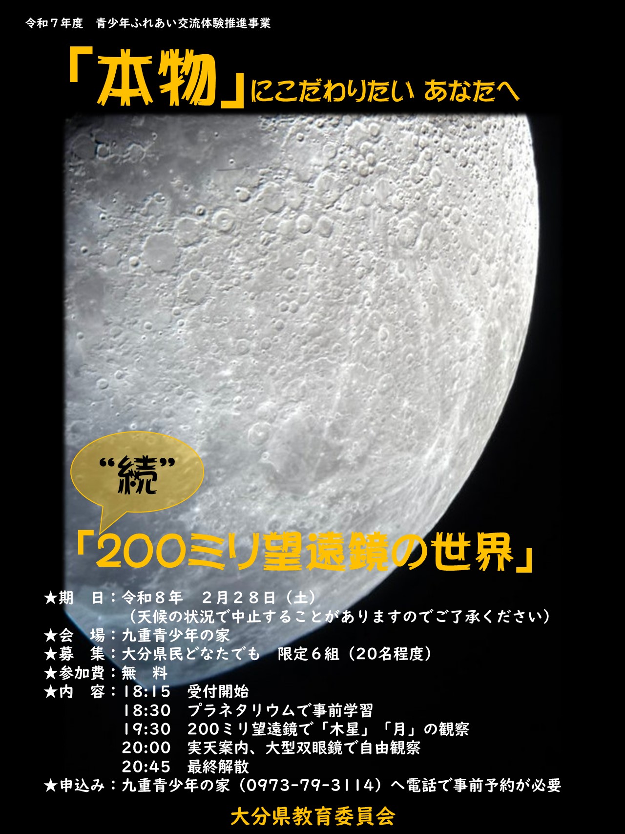 19時30分 「月」「木星」観察…200ミリ望遠鏡で観察します