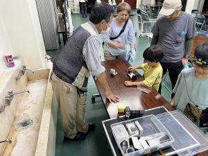 令和5年7月29日(土曜日)~30日(日曜日)に第2回の「森の楽校」が開催されました。天候にも恵まれ予定通り活動ができました。一日目は「ぶんご渡し」付近の川で生き物の観察や川遊びを行いました。二日目が所内にて顕微鏡を使った生き物の観察やフィールドアスレチックを楽しみました。