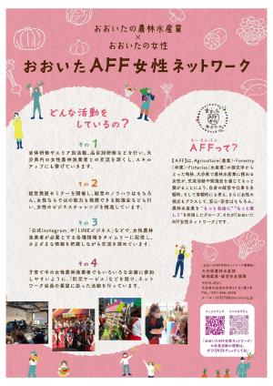 大分県で農林水産業に携わる女性が、交流活動や勉強会を通じてつながることでお互いの取組から学び合い、経営感覚と社会参画への意識を高めて夢や希望を実現する力をつけ、農林水産業の振興や地域活性化に繋ぐための活動の場、それが『おおいたaff女性ネットワーク』です。