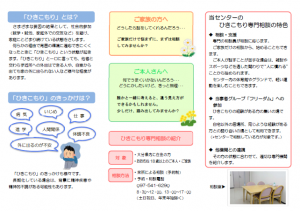 精神保健福祉相談の一環として、ご本人やご家族からのひきこもりに関する相談に応じています。