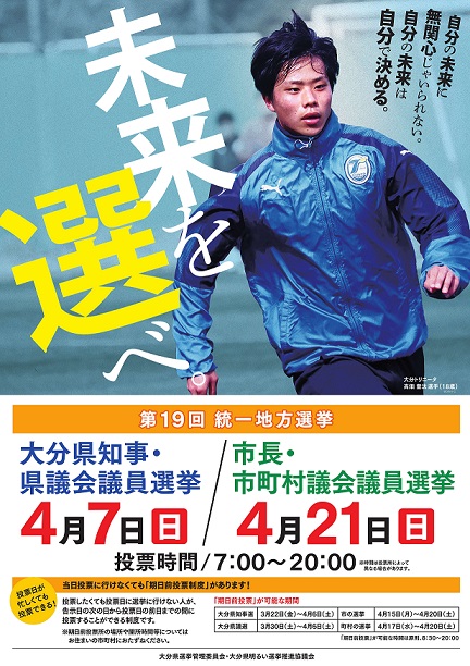 「未来を選べ。」という強い呼びかけのキャッチコピーを入れることで、大分の未来を選ぶ場である選挙は、他人ごとではなく自分ごとであることを訴求し、若い世代を中心に投票率を向上させることをコンセプトとしています。