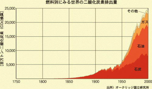 電気やガス、ガソリン、灯油(とうゆ)などのエネルギーを使うと温室効果(おんしつこうか)ガスのCO₂(シーオーツ―。二酸化炭素(にさんかたんそ)のこと。)が発生します。 つまり、テレビを見たり、車に乗ったり、お風呂に入ったりすることにより、CO₂は発生します。 みんなのくらしが豊(ゆた)かで便利(べんり)になった分、CO₂などの温室効果ガスは増えています。