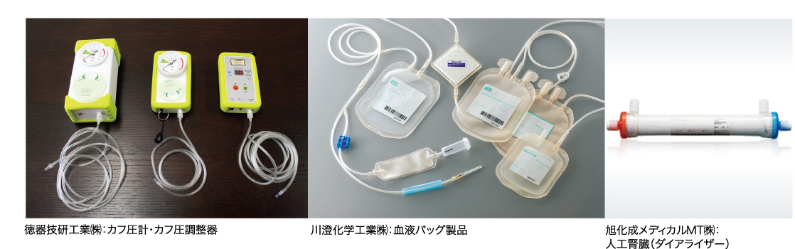 例えば、旭化成メディカルMT(株)では、人工腎臓(ダイアライザー)(シェア日本1位)や、ウイルス除去フィルター(シェア世界1位)が作られているし、川澄化学工業(株)では、血液バッグ製品(シェア日本1位)が作られているんだよ。どれも医療現場には欠かせないものだよね。