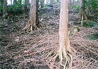 | 井上氏 | うちは代々林業家で、私で8代目です。林業経営は、先祖が植えた木を伐採して孫のために植えるわけで、自分で植えた木を伐ることは、普通はありません。これを50年・60年のサイクルで行ってきました。代々続くということは、非常に自分の家の森林に愛着を感じます。その意味での森林への熱い思いがあります。私は最近、人工林に誇りを感じています。 地球温暖化問題が取りざたされていますが、森林は二酸化炭素を吸収し酸素を生産する機能を持っています。この機能は、植林してから20年・30年してから発揮し、70年・80年くらいまでがピークです。森林も老齢化してくると機能が弱ってきます。70年・80年のサイクルで森林を造成していくことが、森林機能を最大限に保つやり方なのです。同時に木材も育ちます。森林機能を最大限に発揮しながら、健康的な素材である木材も生産している人工林は、非常にすばらしいを実感しています。また人工林は人が入りやすい森林です。森林は森林浴など癒し効果があり、環境教育にも利用できます。それに何よりも子どもたちが遊べる森を作ることができます。 森林経営は単なる産業ではなく、水と空気と木材の生産、すなわち環境づくりをしているということだと思うのです。 |