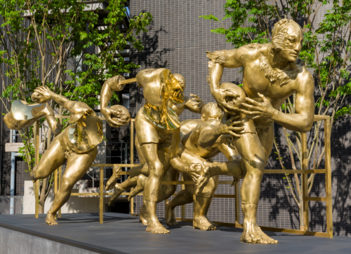 「混沌とし、出口が見えない世界を突破した瞬間に湧きあがるカタルシス。これはラグビーの肉体の壁を突破する超人間の姿を、特殊なフィルターを通して、彫刻にしたものである。」