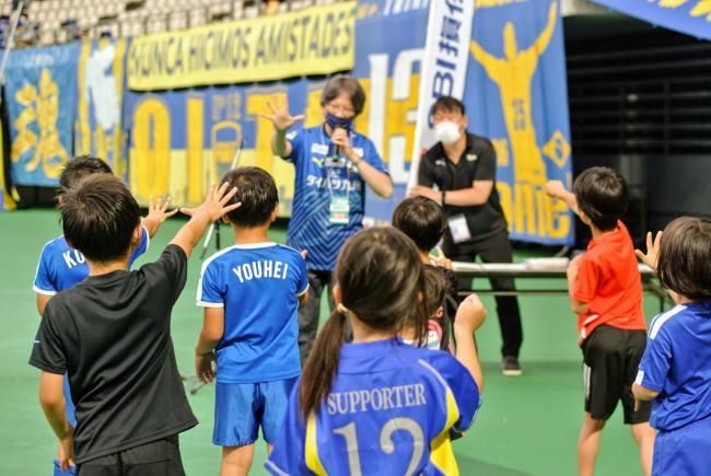 また、当日はJリーグ第20節FC町田ゼルビア戦の日であり、参加者は試合前の大分トリニータの選手たちのウォーミングアップの様子を見学しました。