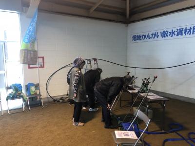 平成30年11月3日(土曜日)に竹田市荻町で第39回荻ふるさと祭りが開催されました。本事務所では荻柏原土地改良区の協力のもと畑地かんがい散水資材の展示を行いました。荻在住の農家さんや中学生等多くの方が展示物や散水資材の見学に来ました。散水資材に関する質問等も多く出されました。地域の皆さんの「畑かん」に対する関心の高さが伺えました。
