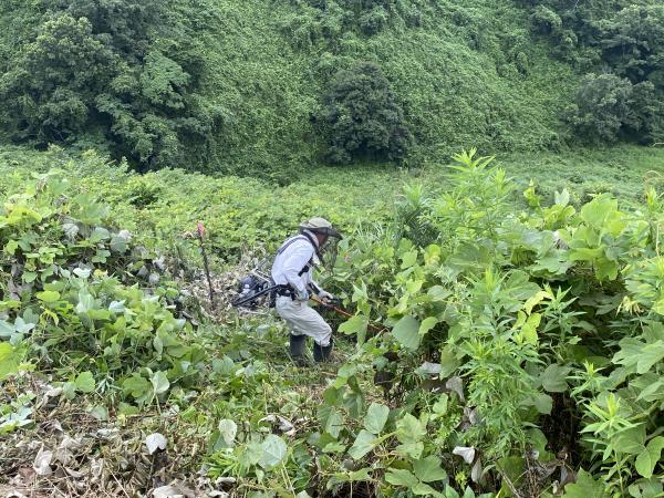 今年度も豊後大野市大野町の師田原ダムにおいて、地元住民、建設業者、市及び土地改良区の方々と土地改良施設愛護活動の一環として堤体法面の草刈を実施しました。