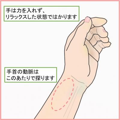 ※血圧が低い(収縮期血圧が80mmhg以下)の場合、手首で検脈しづらいことがあります。