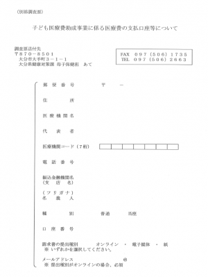 今後県がこども医療費の関係で医療機関の口座を取り扱うことはありませんので、調査票は送らないようにお願いします。