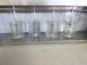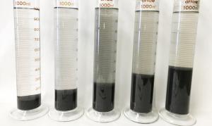 これは、さまざまなサンプルを作成し、どのようにすればより効率的に汚泥の減容が進むかを検証する実験の様子です。
