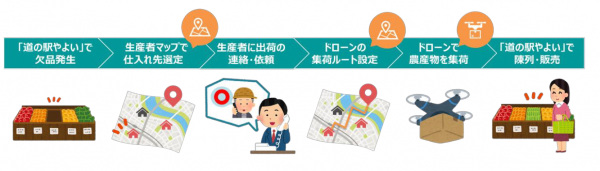 日本初、ドローンと生産者マップを活用した農産物の自動集荷と即売のサービス実証に成功