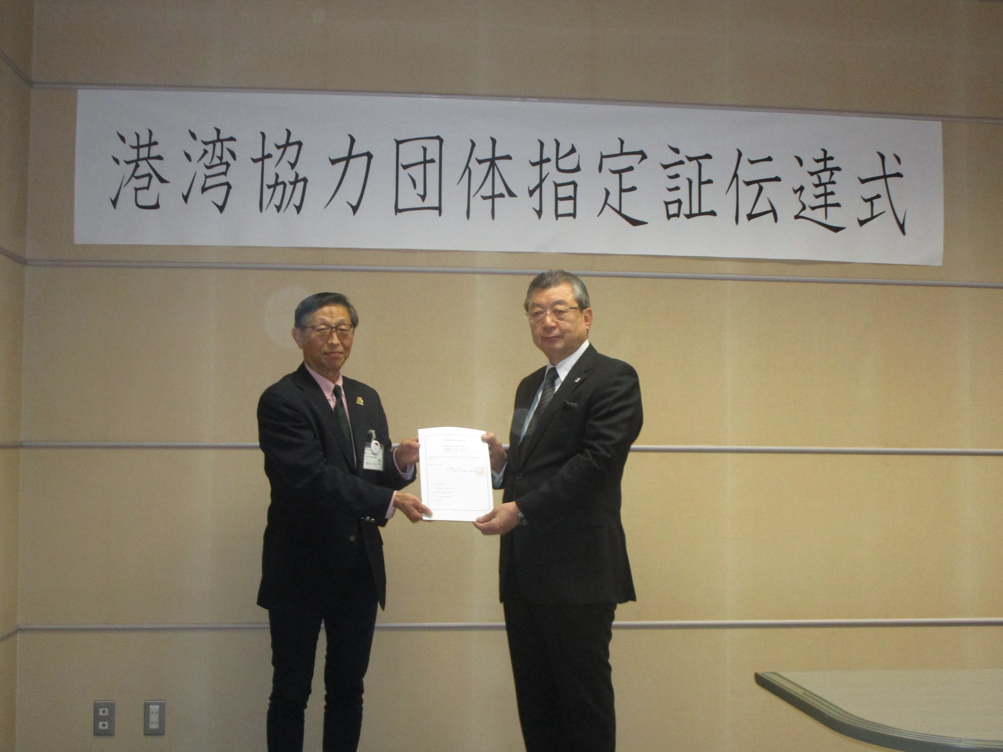 平成30年3月5日(月曜日)に、港湾協力団体指定証伝達式を行いました。