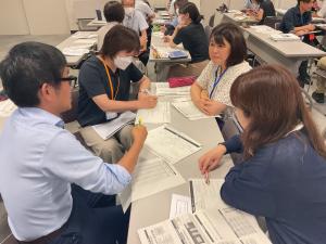 行政説明「各種学力調査の分析等を踏まえた校内研修の在り方について」、取組事例「小・中学校の取組事例」、協議「学力調査の分析等を踏まえた校内研修について」を通して、参加者は、「8月・9月の校内研修において、他校の実践を参考にし、自校でも取り組みたいこと」や「今年度や来年度に向けて、校内研究や校内研修等で取り組んでみたいこと」について協議を行いました。その際に、「学力調査の分析を通して、全教職員で実態把握に取り組む」や「子どもと教職員で目指す姿を共有する」等の意見が挙げられるなど、充実した協議となりました。